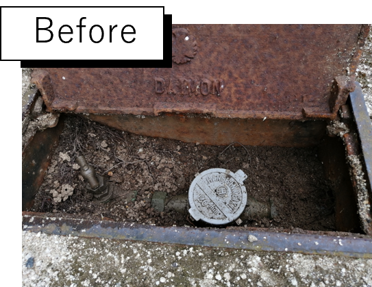 今回駐車場となる部分に水道メーターがあり、道路からかなり高い位置に水道管が通っていました。