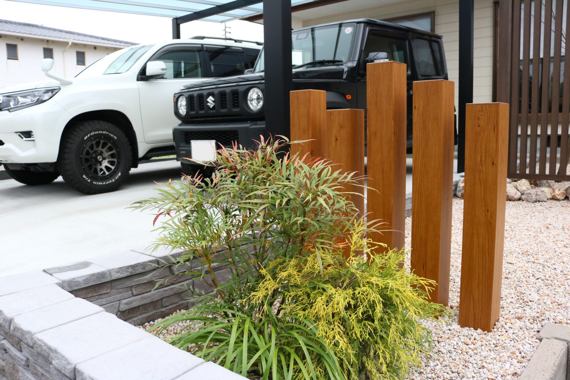 同じ建物でも、家の周りの雰囲気が変わるだけでイメージがガラリと変わりました。