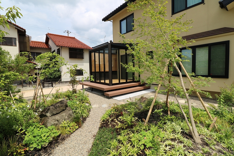 - ガーデンルームをつけて、出来上がった庭を楽しめるようにしたい