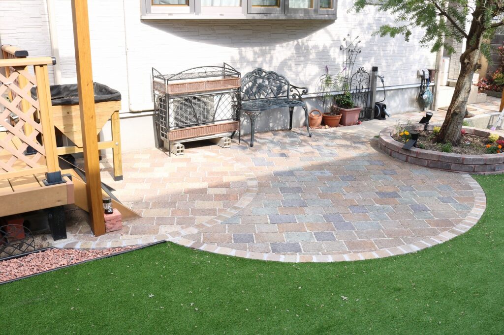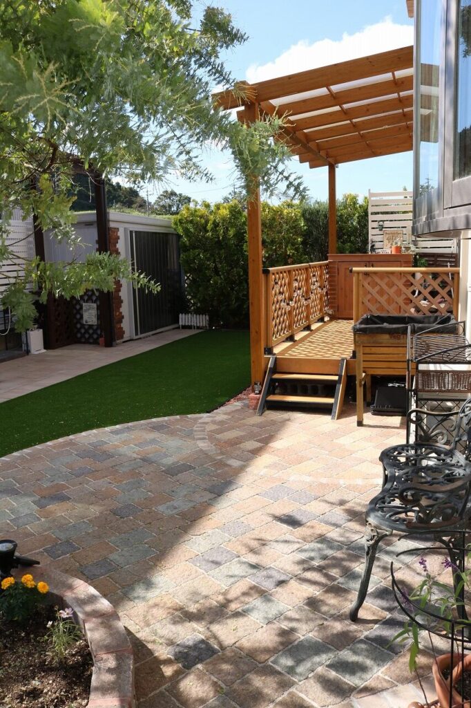 デッキの下には、インターロッキング舗装のスペースを設けました。