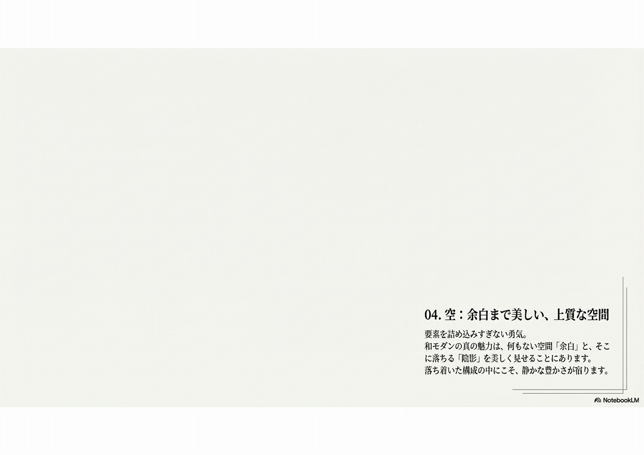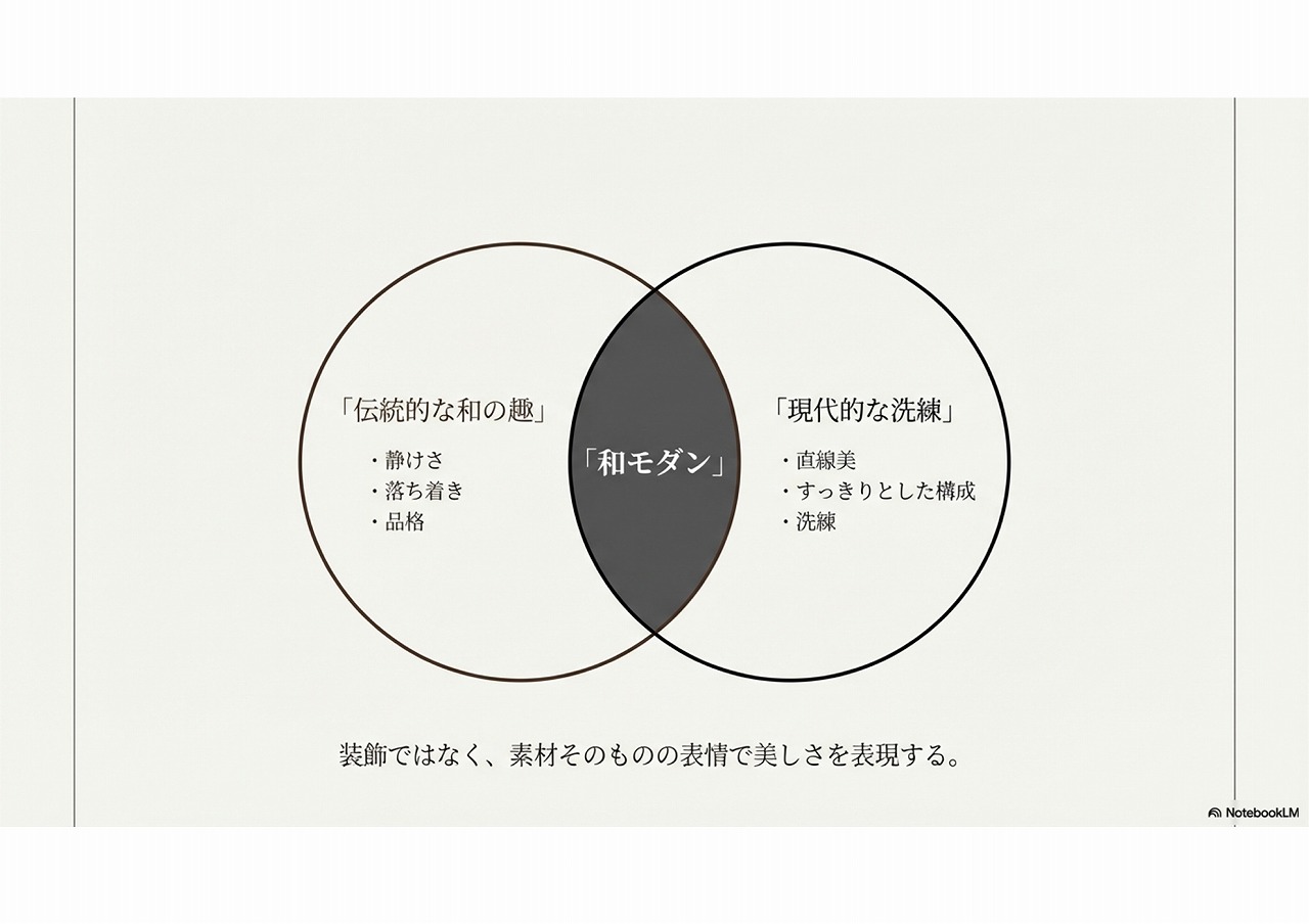 和モダンの魅力は、豪華さを前面に出すのではなく、余白や陰影、素材の表情によって深みを生み出せることにあります。