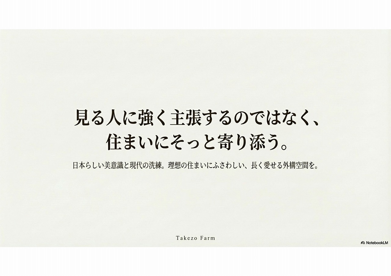 落ち着き、重厚感、品格を備えた、長く愛せる外構空間を求める方にふさわしいデザインです。