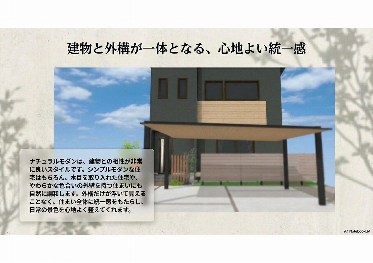 外構だけが浮いて見えることなく、住まい全体に統一感をもたらし、日常の景色を心地よく整えてくれるスタイルです。