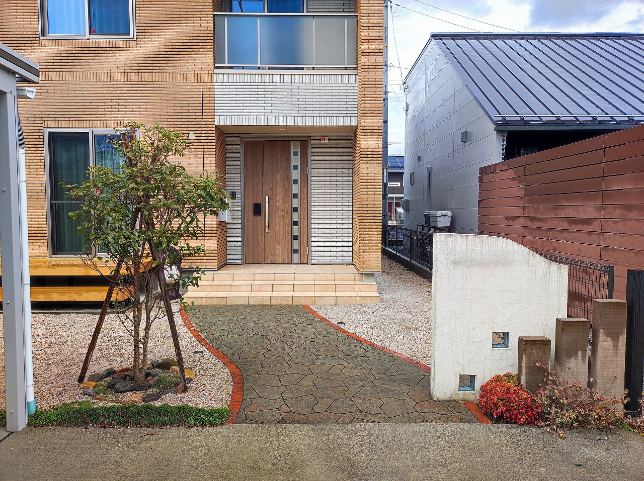 既存のアプローチは高圧洗浄で丁寧にクリーニングし、全体の印象を明るくリフレッシュ。