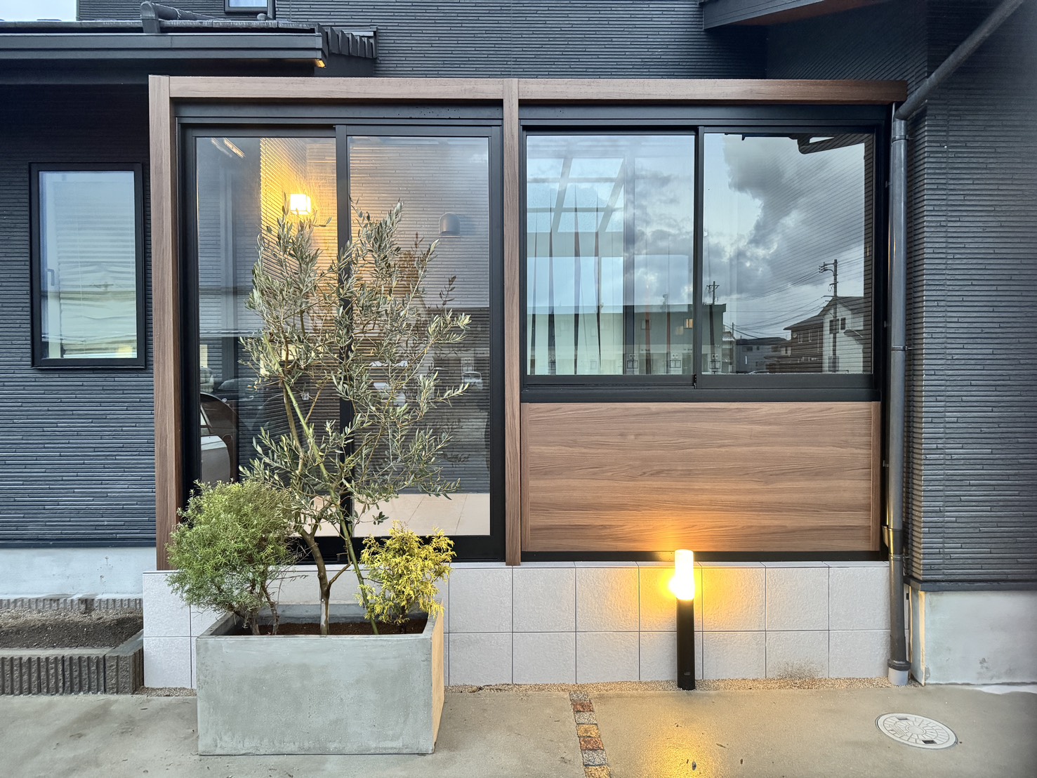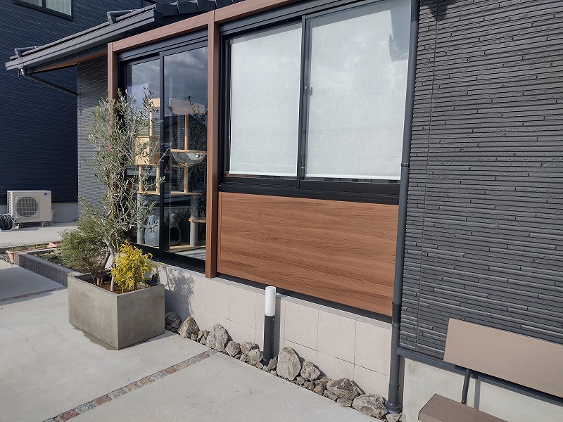 安全性の観点から、前面は全て腰高の壁にせず、一部掃き出し窓にしました。